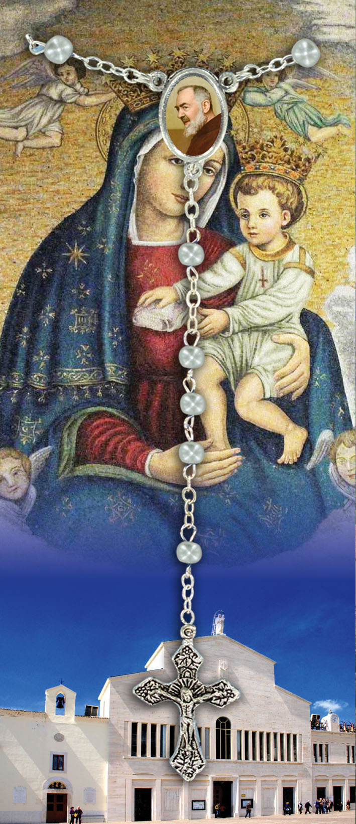 Il libretto, composto da 16 pagine, si presenta con una copertina in plastica trasparente e nell'interno vi è un piccolo rosario con i grani tipo perlina del diamero di mm 4.