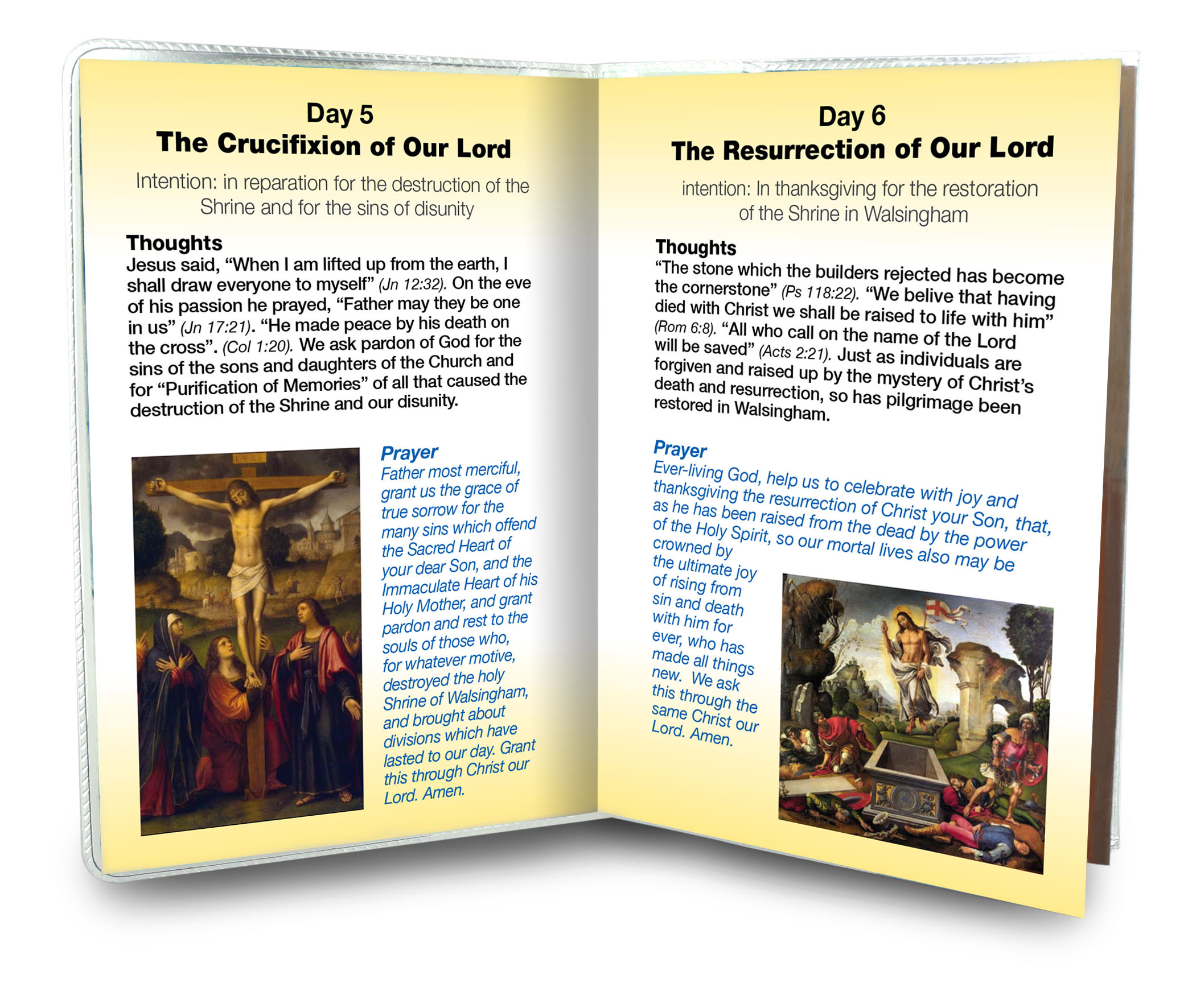 Nell'interno vi sono le invocazioni della novena dedicata alla Madonna di Walsingham.