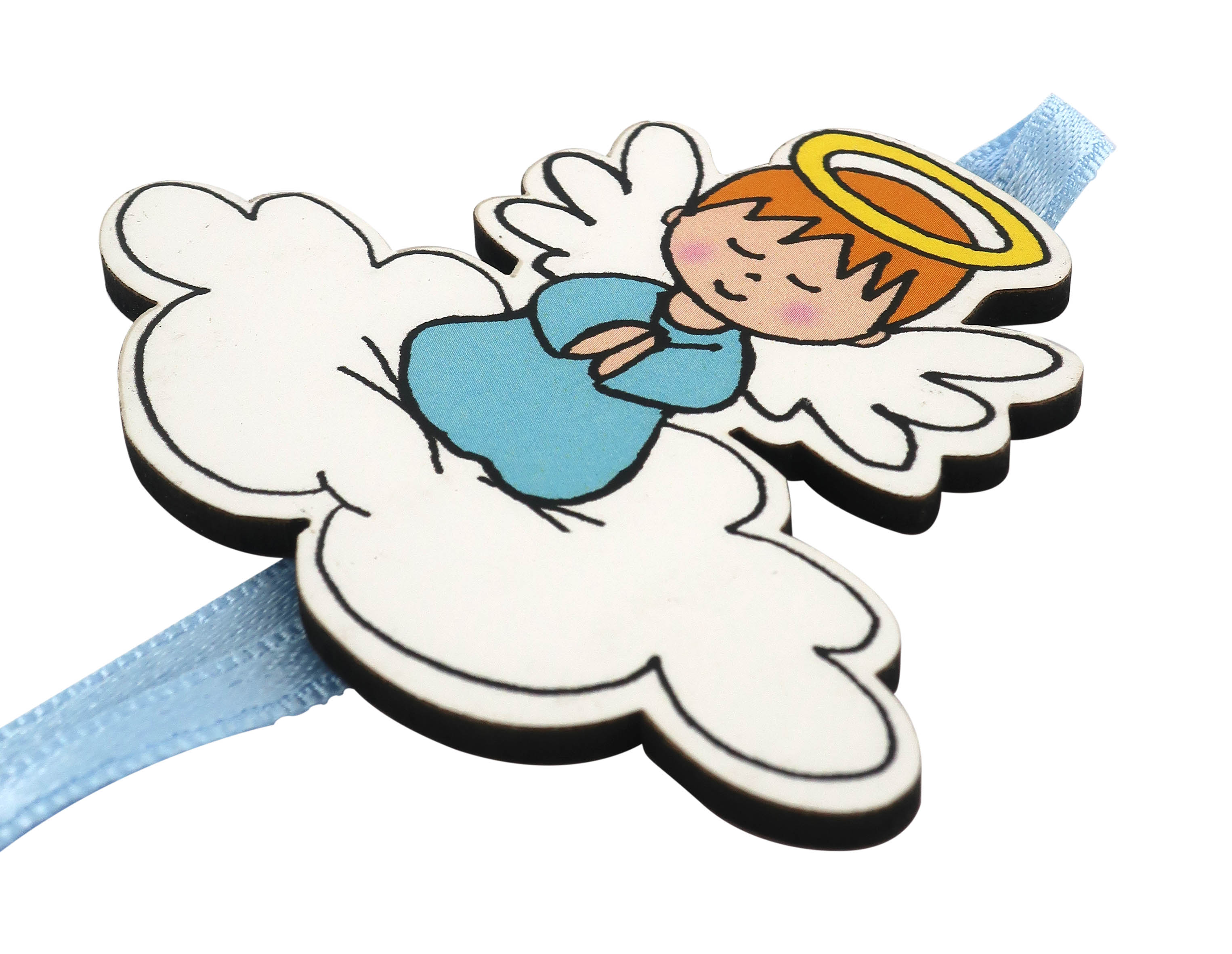 Segnalibro Angelo Custode a forma di cupola con fiocchetto azzurro - 5,5 x 22,5 cm-portoghese