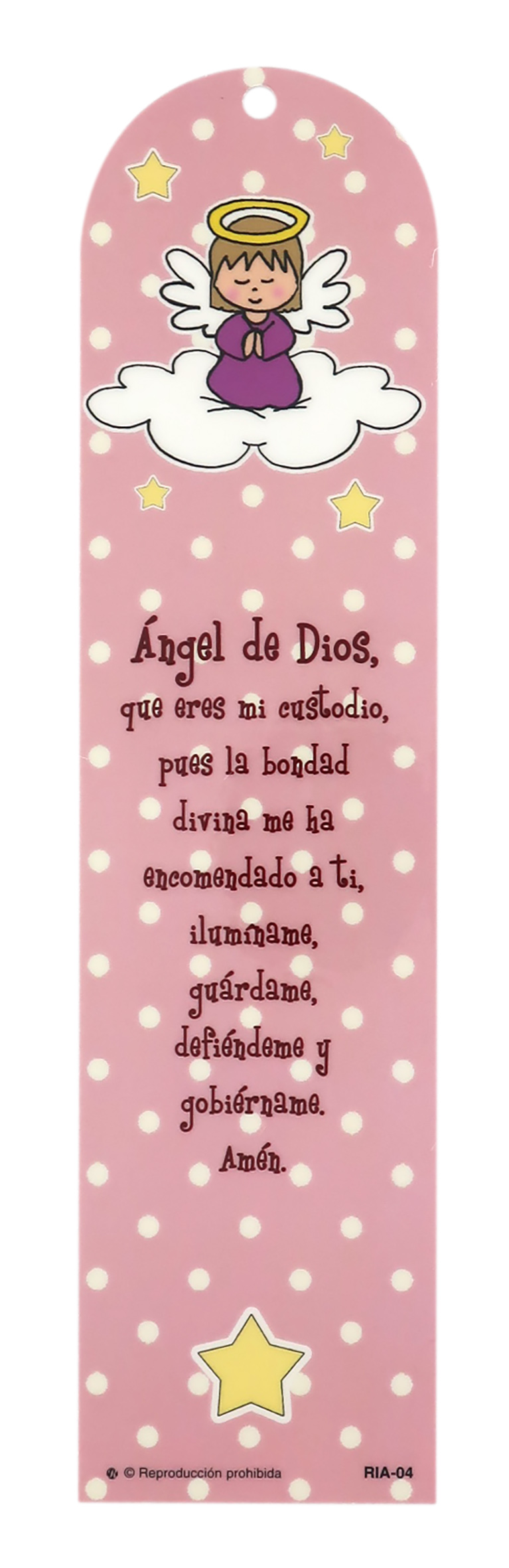 Segnalibro Angelo Custode a forma di cupola con fiocchetto rosa - 5,5 x 22,5 cm - spagnolo