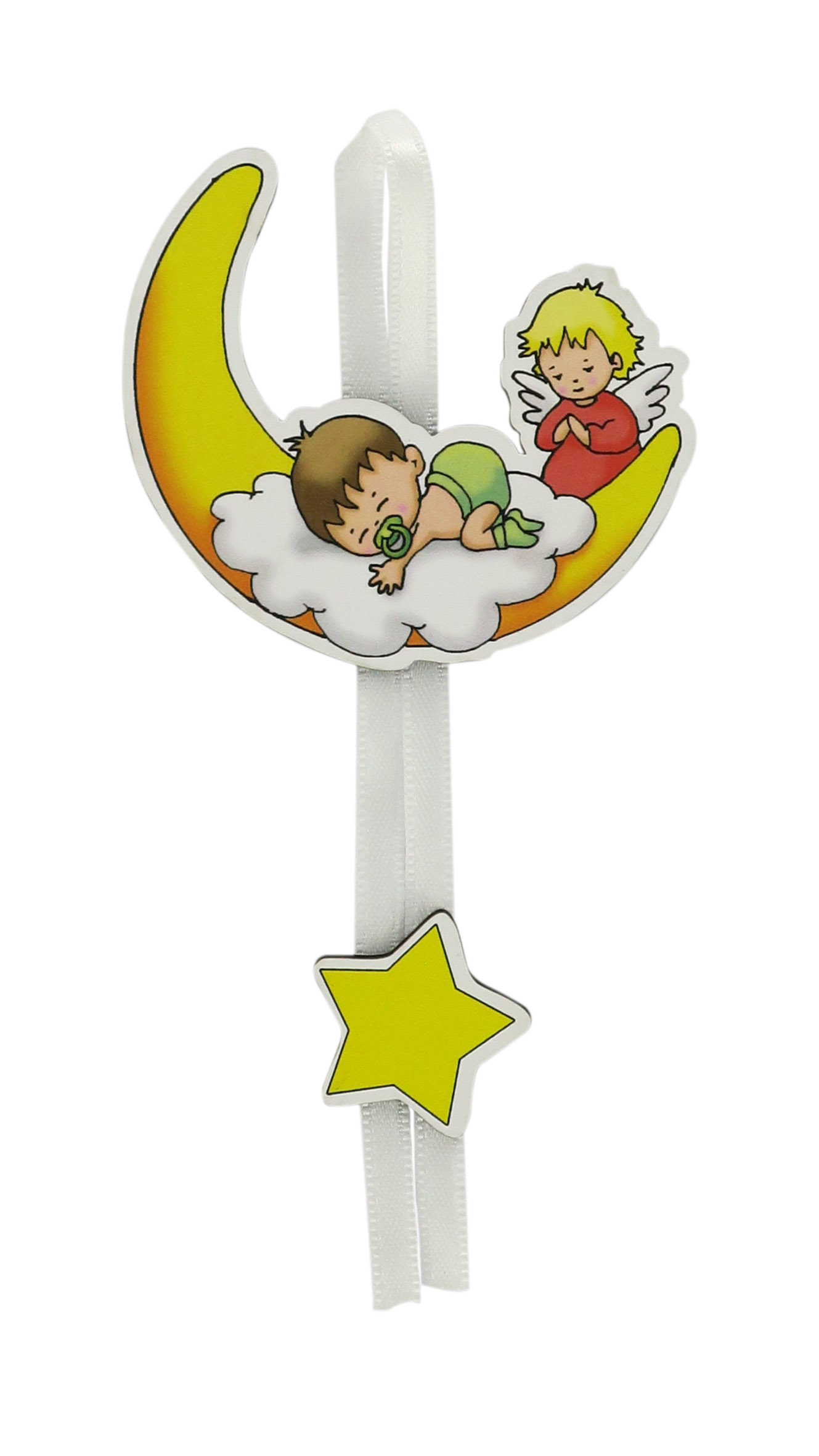 Segnalibro Angelo Custode sulla luna a forma di cupola con fiocchetto bianco - 5,5 x 22,5 cm