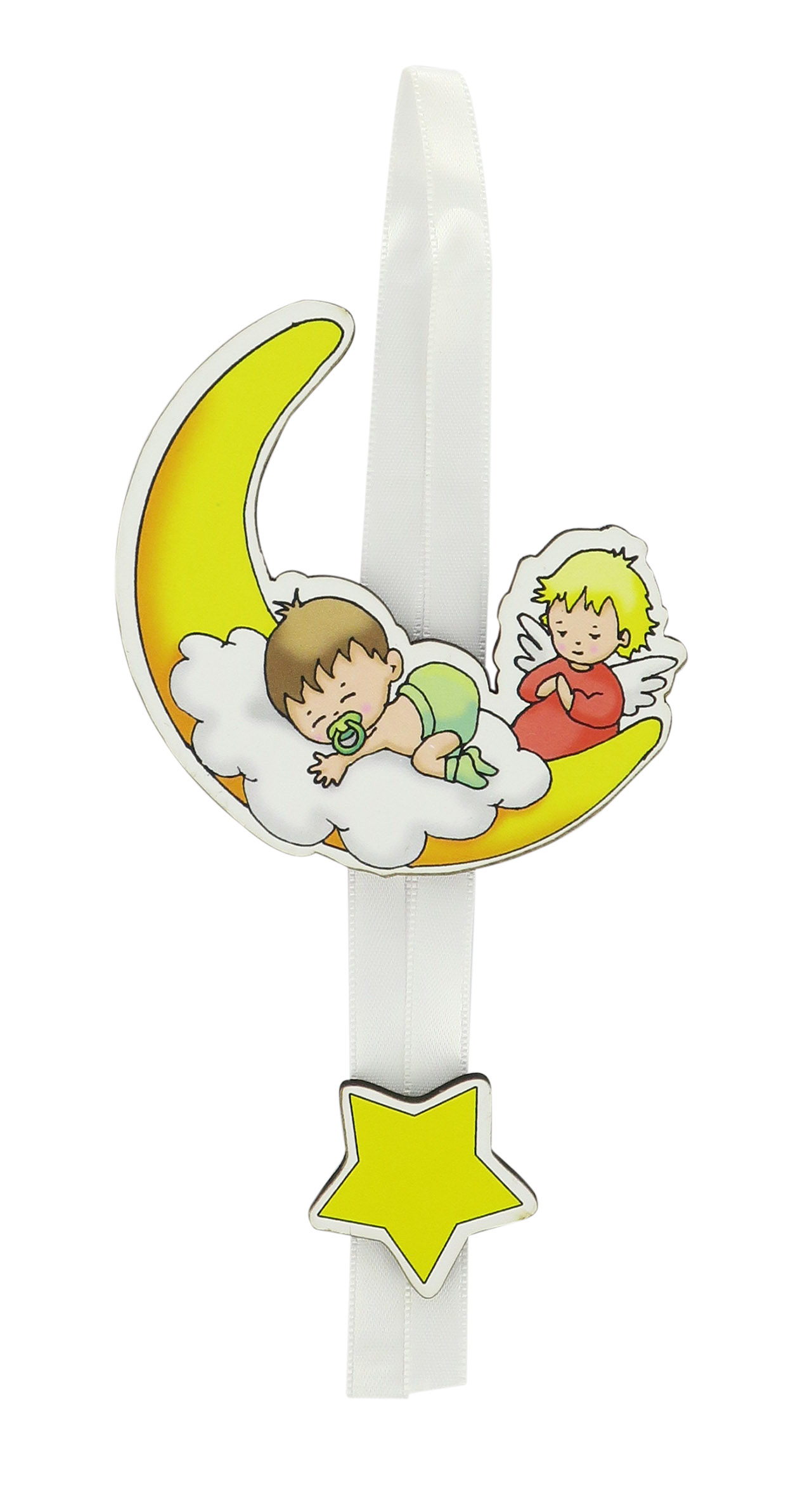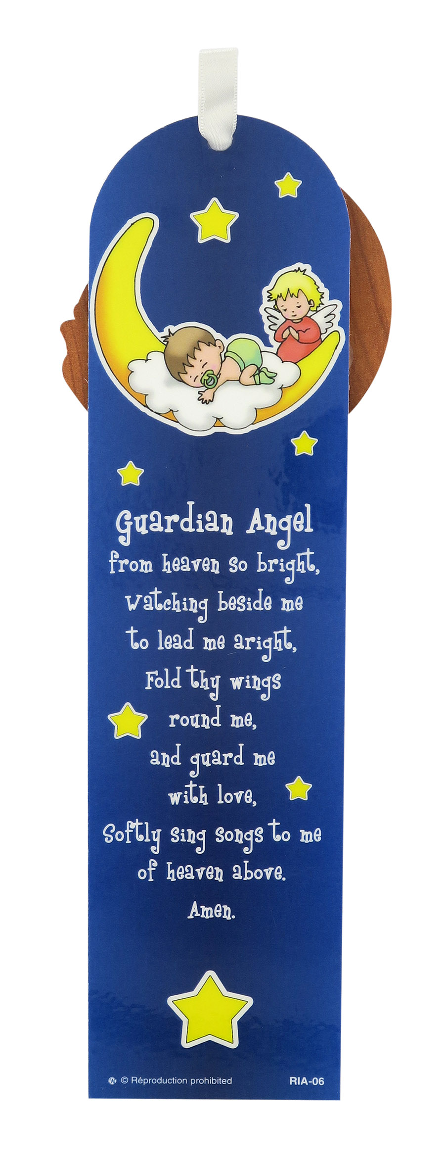 Segnalibro Angelo Custode sulla luna a forma di cupola con fiocchetto bianco - 5,5 x 22,5 cm - inglese