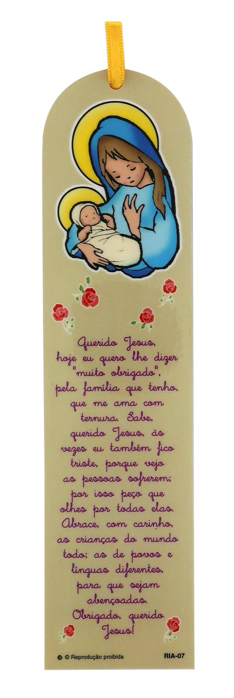 Segnalibro con Ave Maria a forma di cupola con fiocchetto giallo - 5,5 x 22,5 cm - portoghese