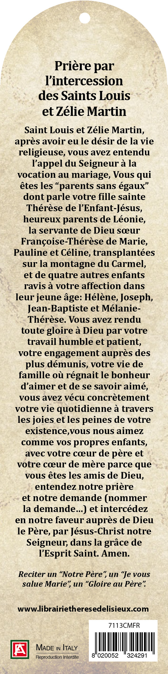 Segnalibro a forma di cupola con fiocchetto e immagine dei coniugi Martin (in francese).