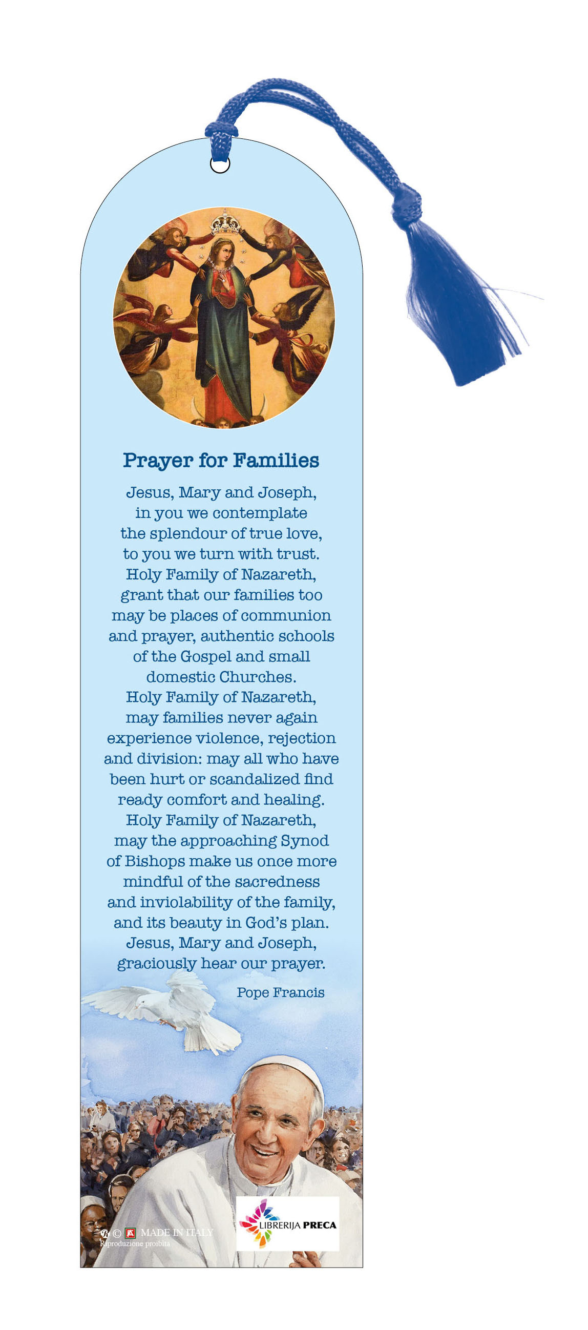 Segnalibro Papa Francesco a forma di cupola con fiocchetto con preghiera in inglese - 5,5 x 22,5 cm