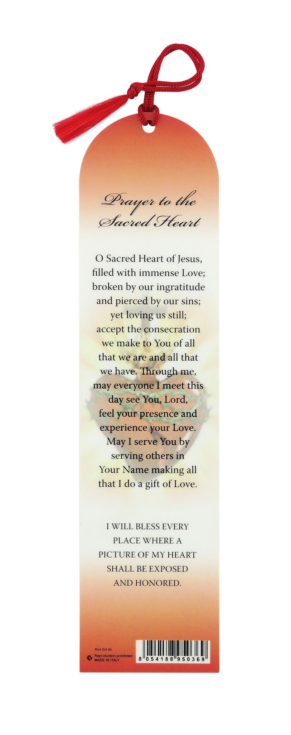 Segnalibro a forma di cupola con fiocchetto rosso e immagine del Sacro Cuore di Gesù