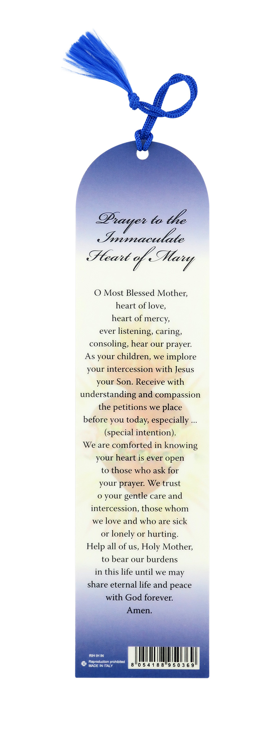 Segnalibro Sacro Cuore di Maria a forma di cupola con fiocchetto blu- 5,5 x 22,5 cm inglese