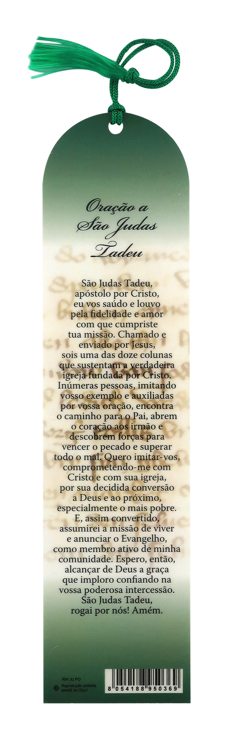 Segnalibro San Giuda Taddeo a forma di cupola con fiocchetto verde - 5,5 x 22,5 cm-portoghese