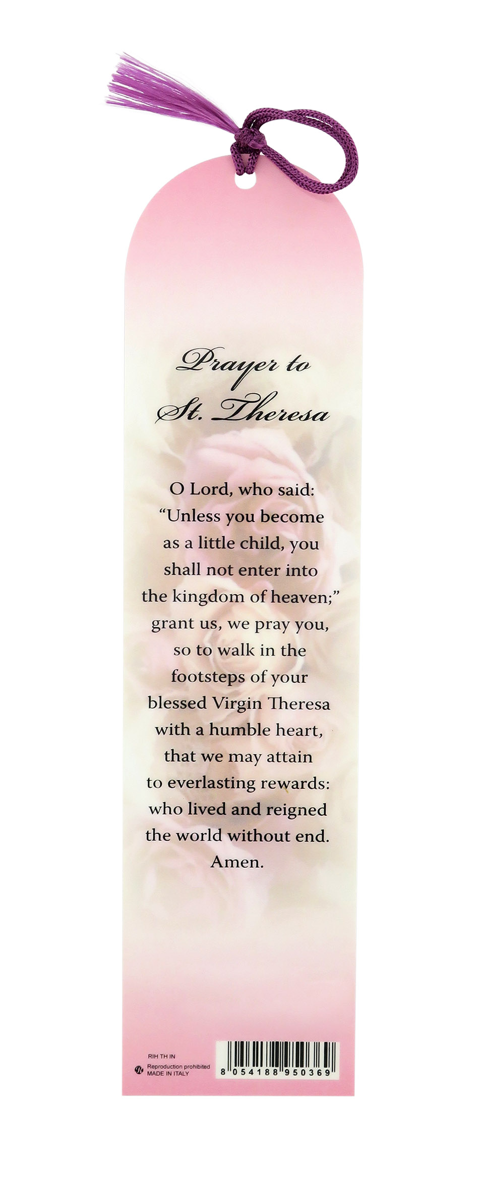 Segnalibro a forma di cupola con fiocchetto viola e immagine di Santa Teresa.Dimensioni:5,5 x 22,5 cm. Realizzato in Italia.