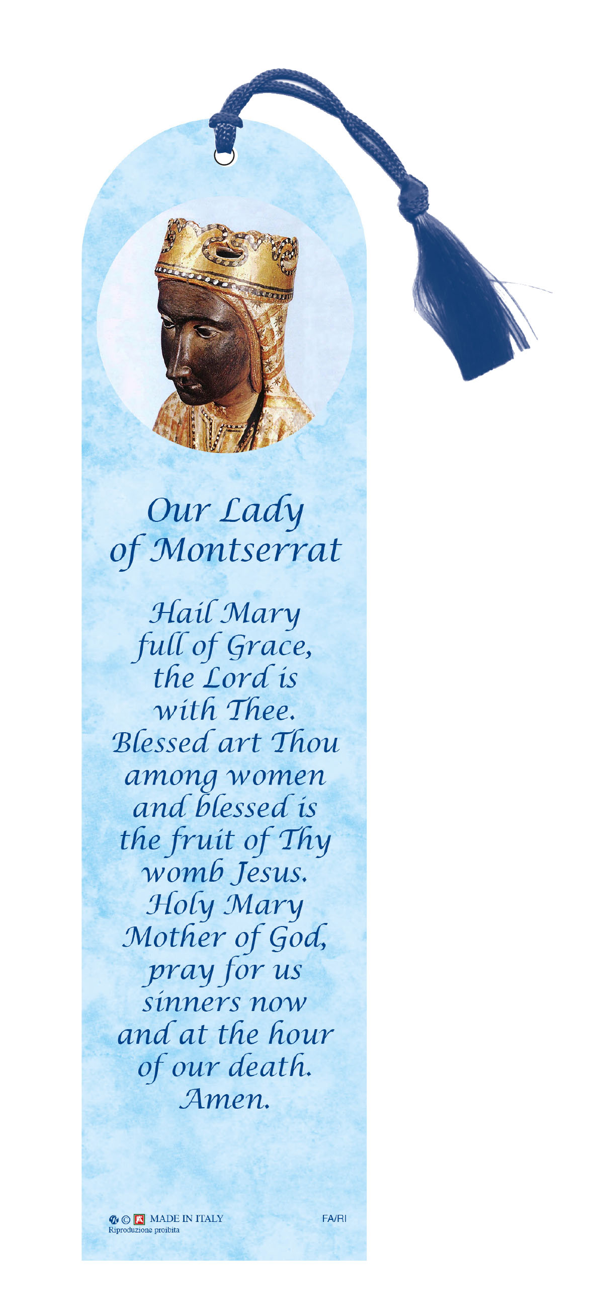Segnalibro Vergine di Montserrat a forma di cupola con fiocchetto rosso - 5,5 x 22,5 cm - inglese
