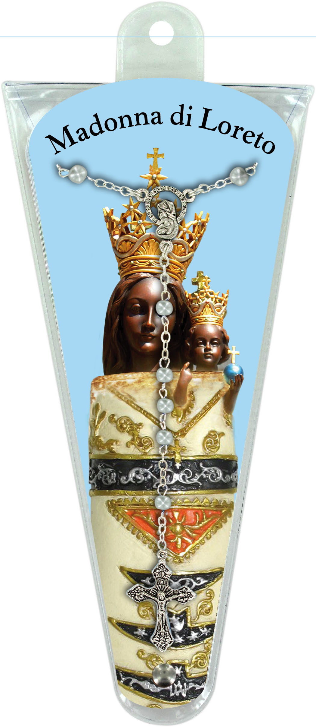 All'interno del blister è inserita una corona del rosario (i colori del rosario possono variare).