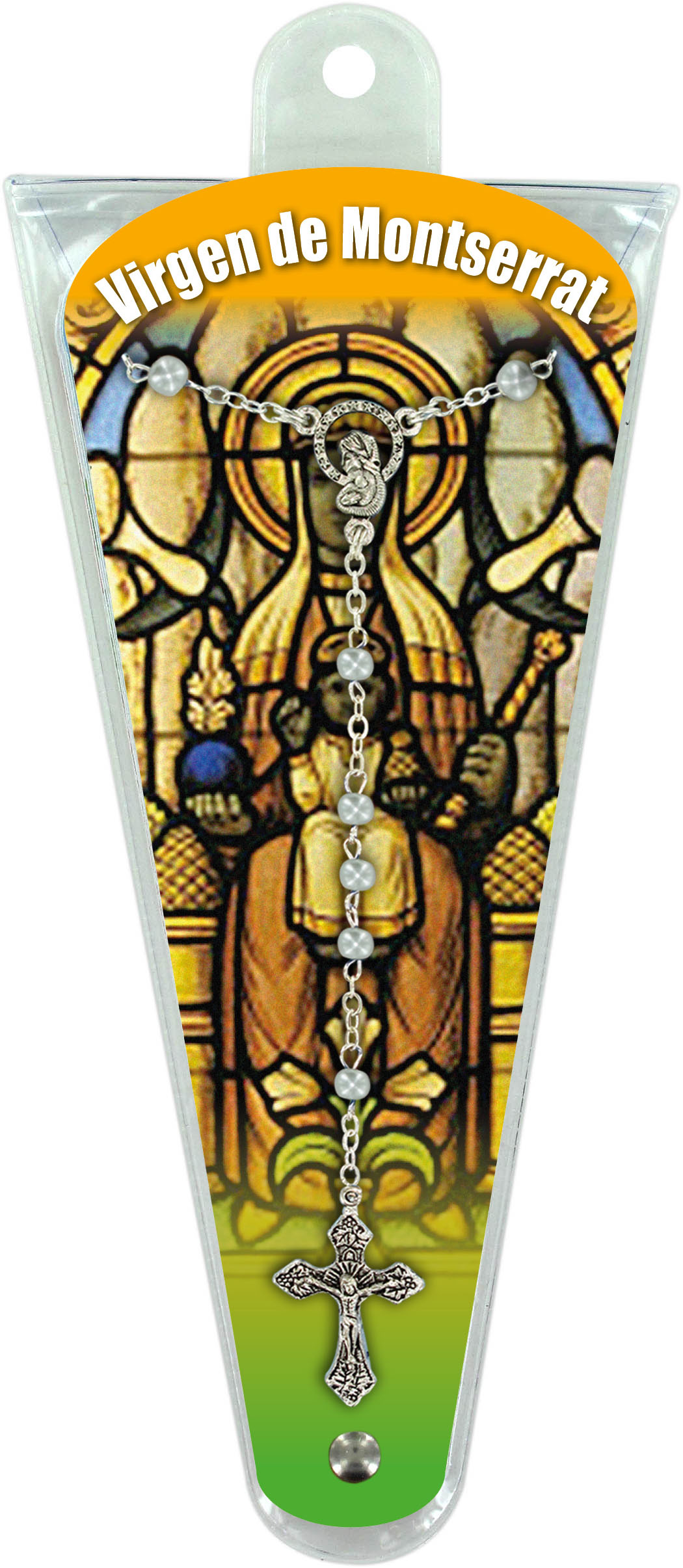 Ventaglio misteri del rosario Madonna di Montserrat in spagnolo con rosario - altezza di 17,5 cm