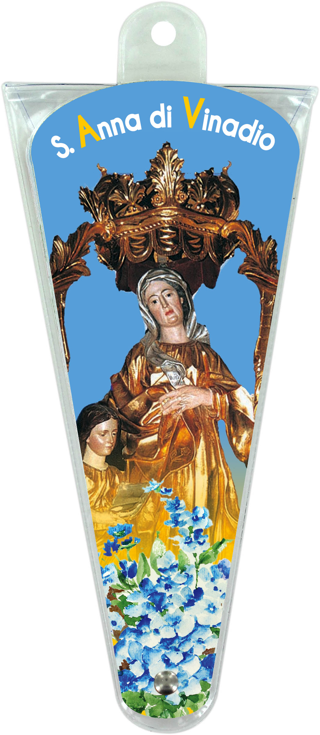 Il ventaglio è composto da 5 petali in cartoncino pesante con immagini di Sant'Anna di Vinadio e del Santuario a lei dedicato.