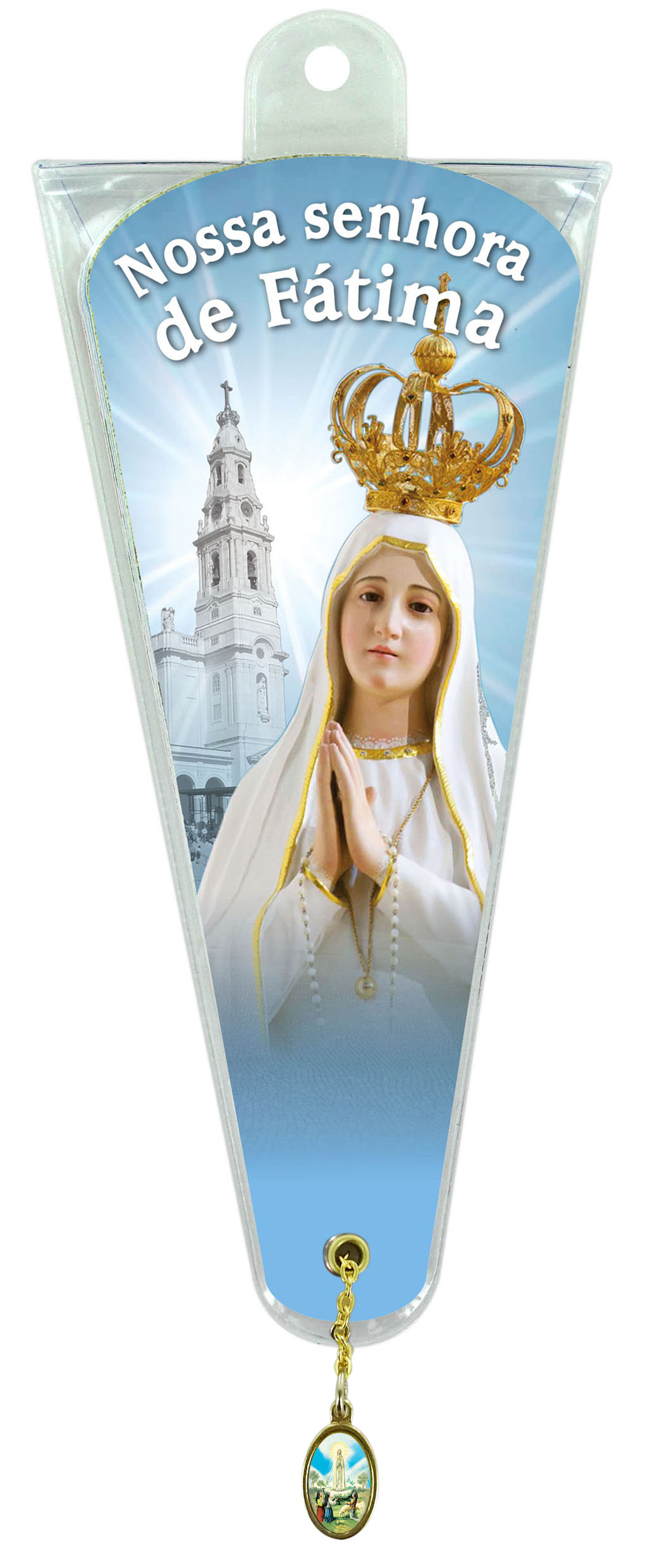 Ventaglio preghiere alla Madonna di Fatima in portoghese con medaglietta