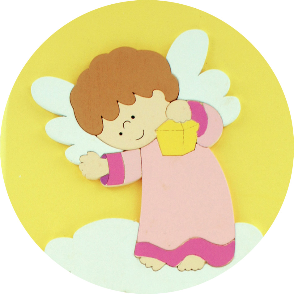 Ferrari & Arrighetti Quadretto per Bimbe, Quadro Preghiera Angelo di Dio in Legno Giallo con Angelo Rosa da Appendere al Muro / Parete, Idea Regalo per Bambine e Ragazze del Catechismo, 28 x 12 Cm