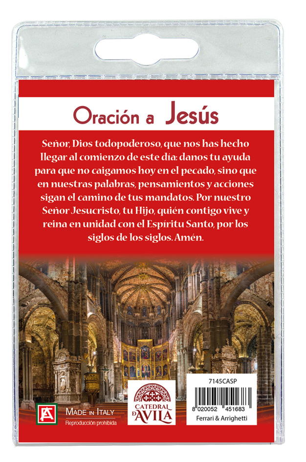Calamita in metallo nichelato raffigurante la Catedral de Avila con una preghiera in spagnolo.