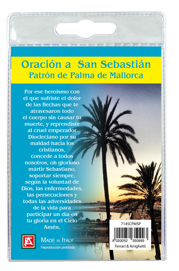 Nell'interno del blister c'è anche un cartoncino con l'immagine della Cattedrale di Santa Maria e sul retro del cartoncino stesso una preghiera dedicata a San Sebastiano.