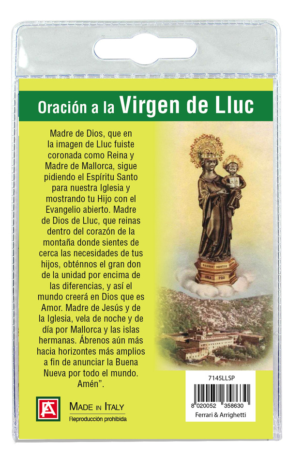 Calamita Madonna di Lluc in metallo nichelato con preghiera in spagnolo