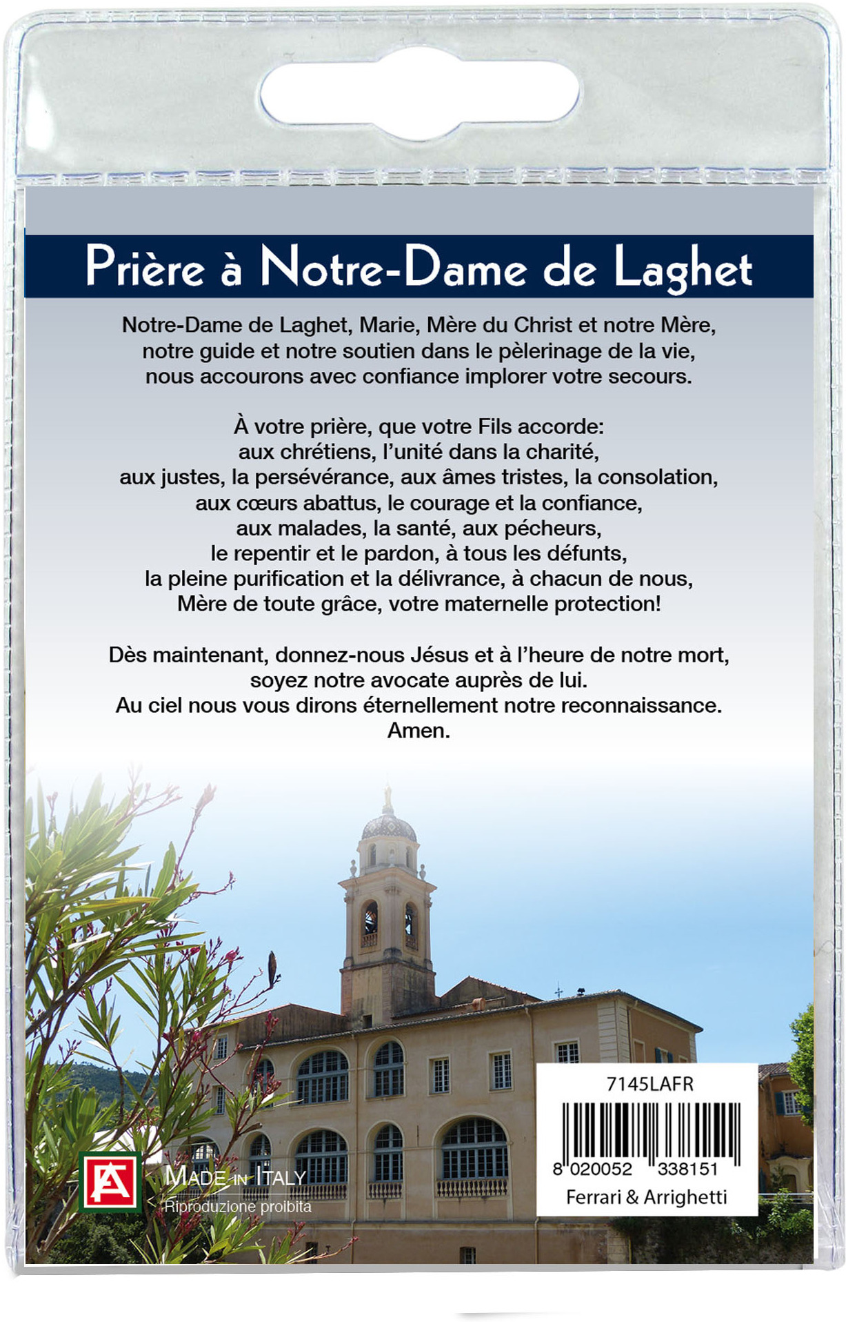 Calamita Notre Dame de Laghet in metallo nichelato con preghiera in francese
