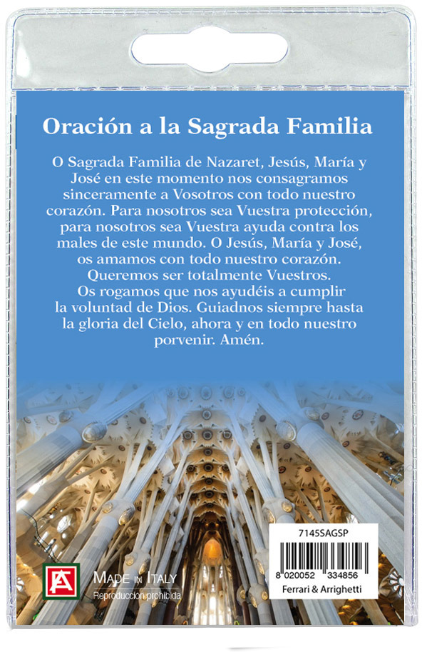 Nell'interno del blister c'è anche un cartoncino con l'immagine della basilica e sul retro del cartoncino stesso una preghiera dedicata alla Sacra Famiglia.