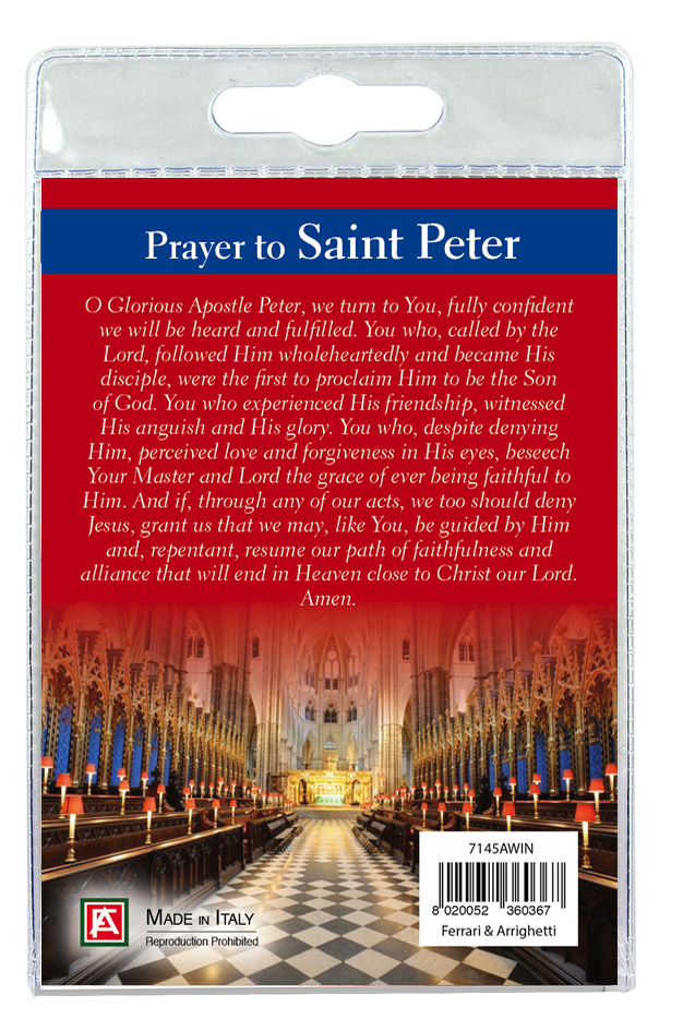 Nell'interno del blister c'è anche un cartoncino con l'immagine della Abbazia e sul retro del cartoncino stesso una preghiera dedicata a San Pietro.