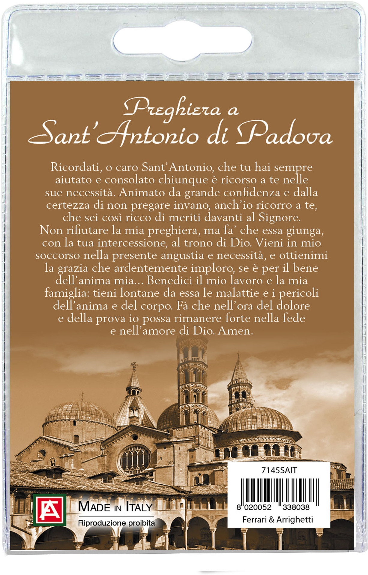 Calamita Sant Antonio di Padova in metallo nichelato con preghiera in italiano