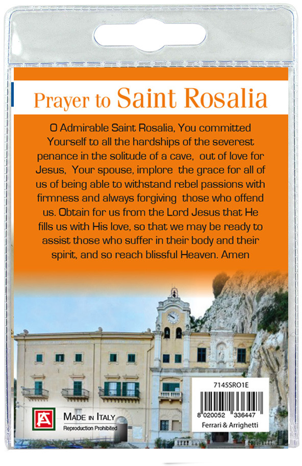Nell'interno del blister c'è anche un cartoncino con l'immagine della Santa e sul retro del cartoncino stesso una preghiera a lei dedicata.