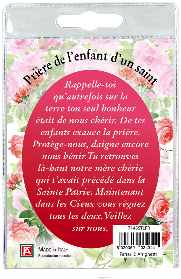 Nell'interno del blister c'è anche un cartoncino con l'immagine della Santa e sul retro del cartoncino stesso una preghiera a lei dedicata.
