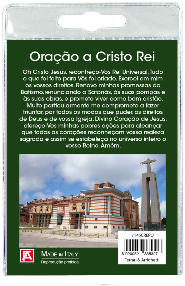 Nell'interno del blister c'è anche un cartoncino con l'immagine del Santuario di Cristo Rei e sul retro del cartoncino stesso una preghiera a lui dedicata.