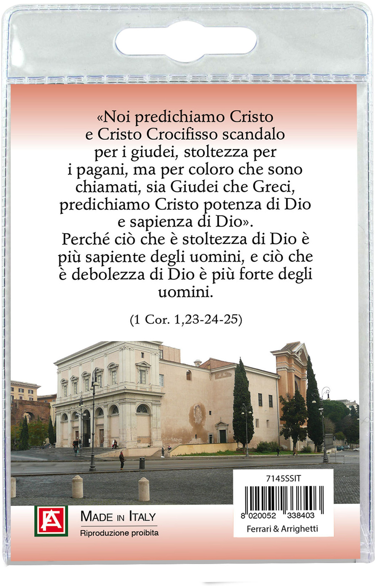 Nell'interno del blister c'è anche un cartoncino con l'immagine del Santuario della Scala Santa e sul retro del cartoncino stesso una preghiera.
