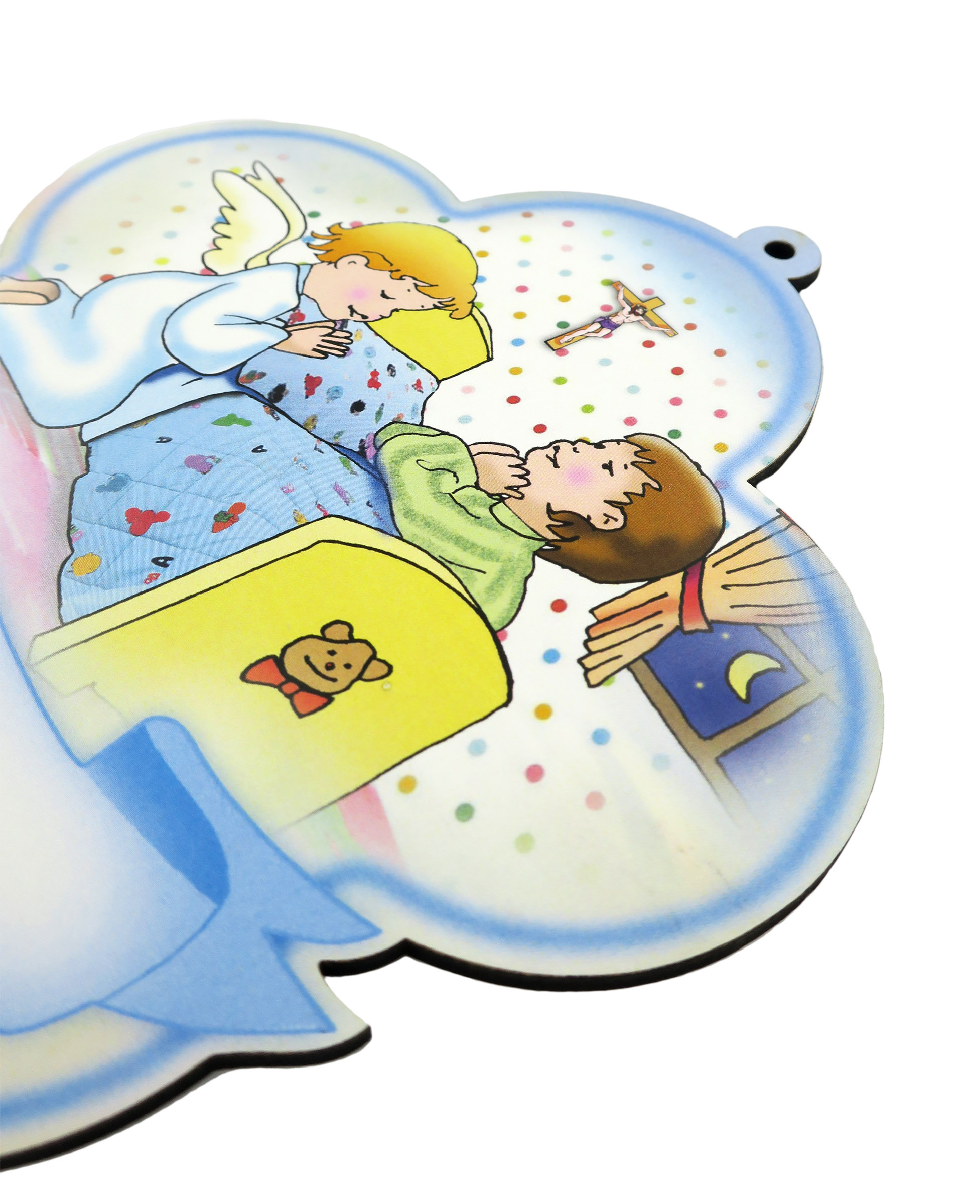Quadro in legno Angelo custode azzurro con nome da compilare - 15 cm x 16 cm