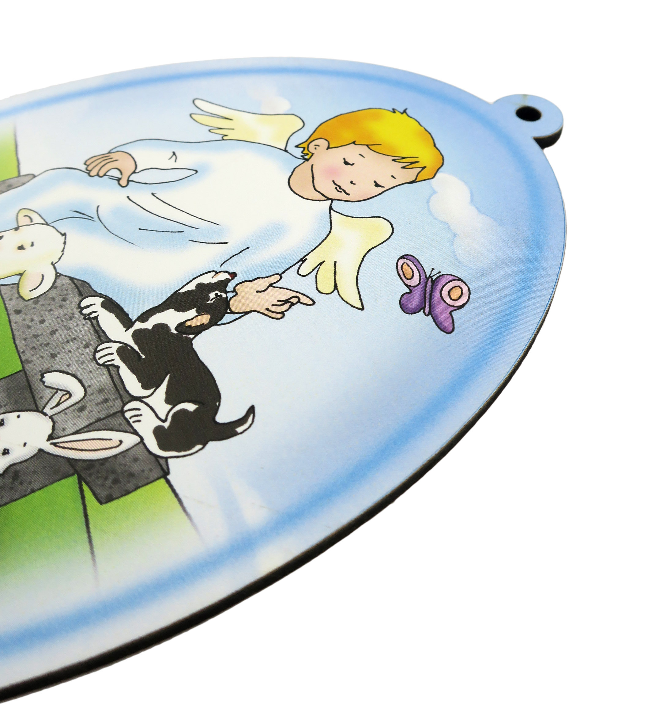 Quadro in legno Angelo custode con nome da compilare - 12 cm x 17 cm