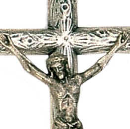 Croce tipo tronchetto con Cristo riportato in metallo ossidato. Altezza della croce: 5,5 cm.