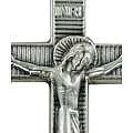 Croce con Cristo stampato in metallo nichelato di misura 5 x 3 cm.