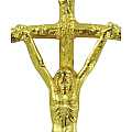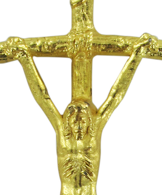 Croce pastorale con Cristo riportato in metallo dorato di misura 3,8 x 1,5 cm.