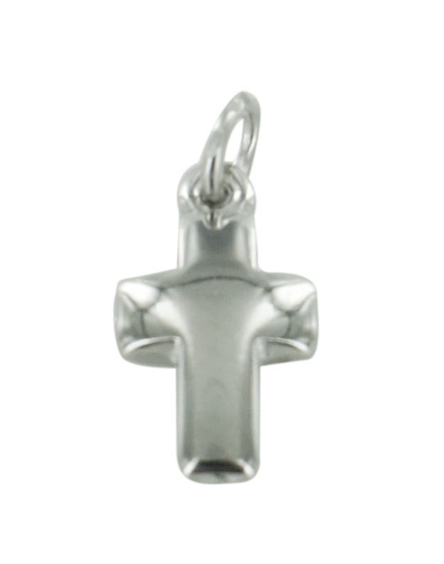 Croce in metallo nichelato lucido bombato con anellino.