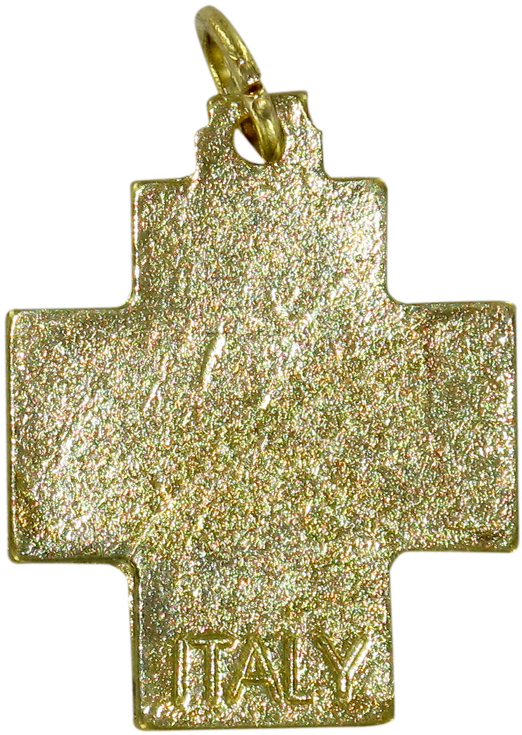 STOCK: Croce alfa e omega metallo dorato con smalto nero, da 2 cm.