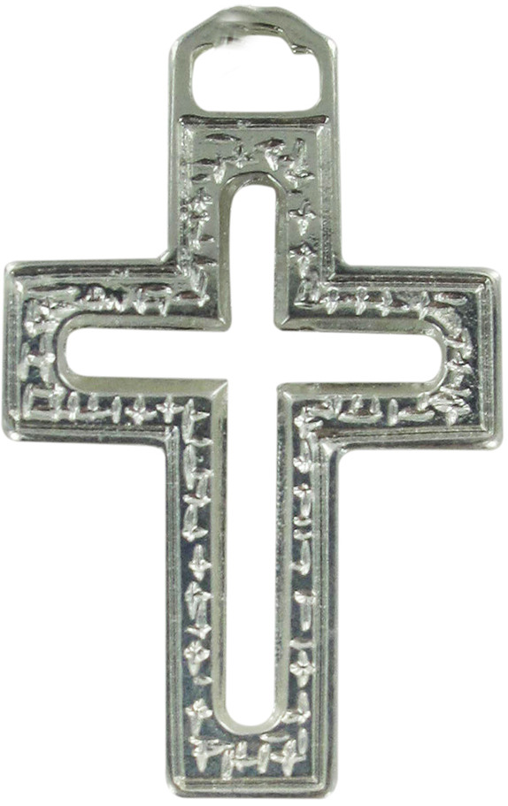 STOCK:Croce Traforata in metallo argentato con smalto rosso - 3,5 cm