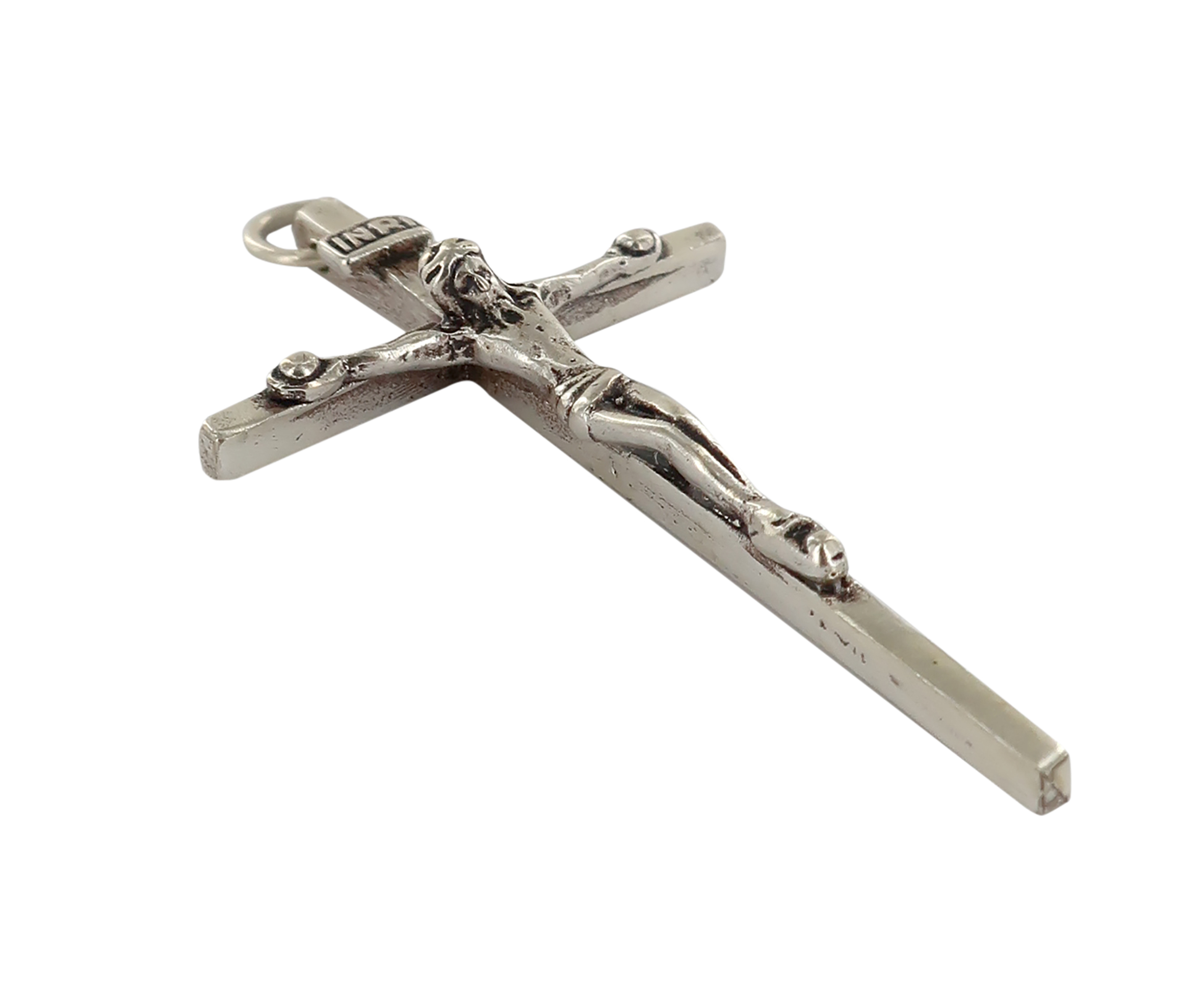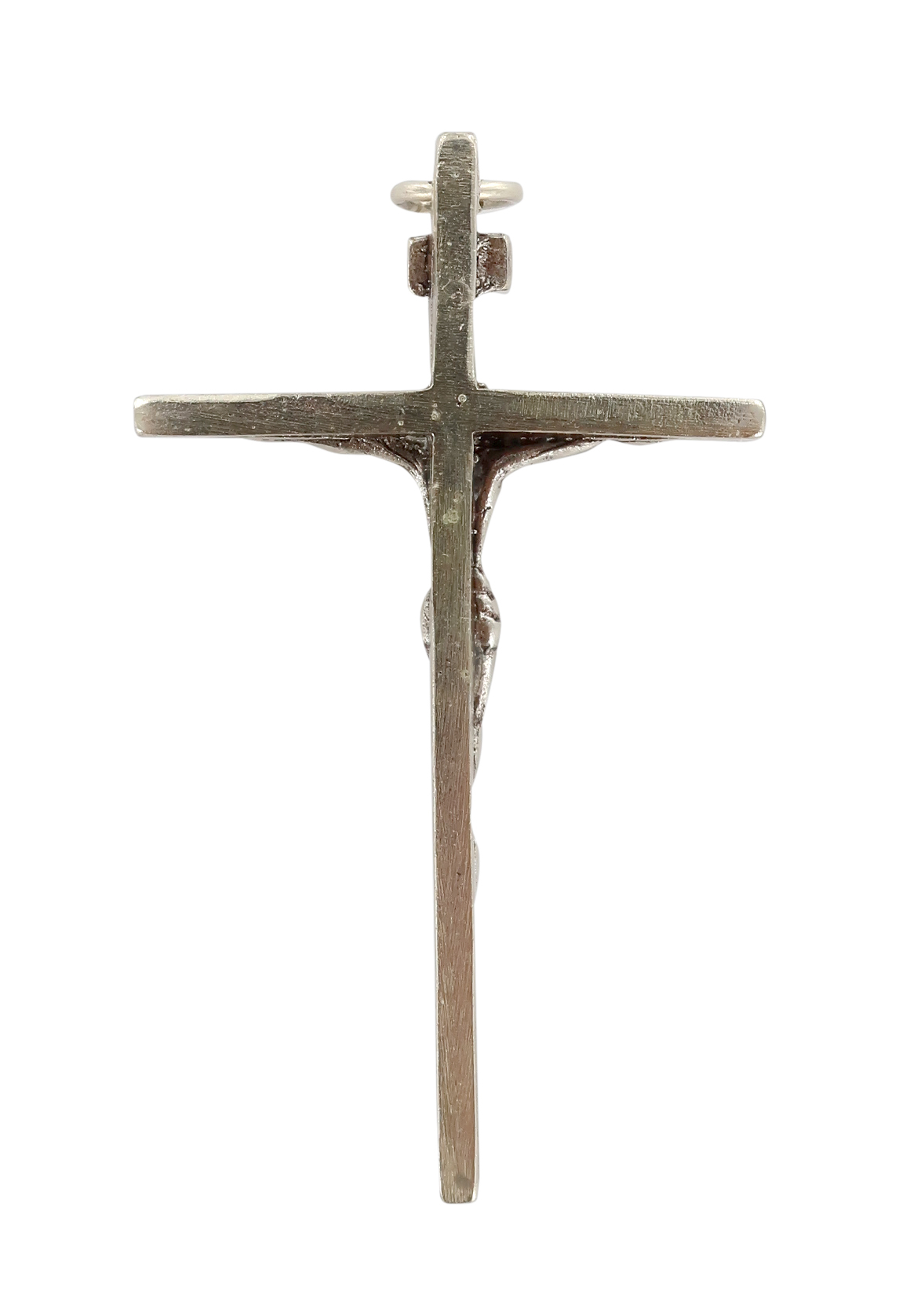 Croce a bastoncino con il Cristo riportato in argento 925.