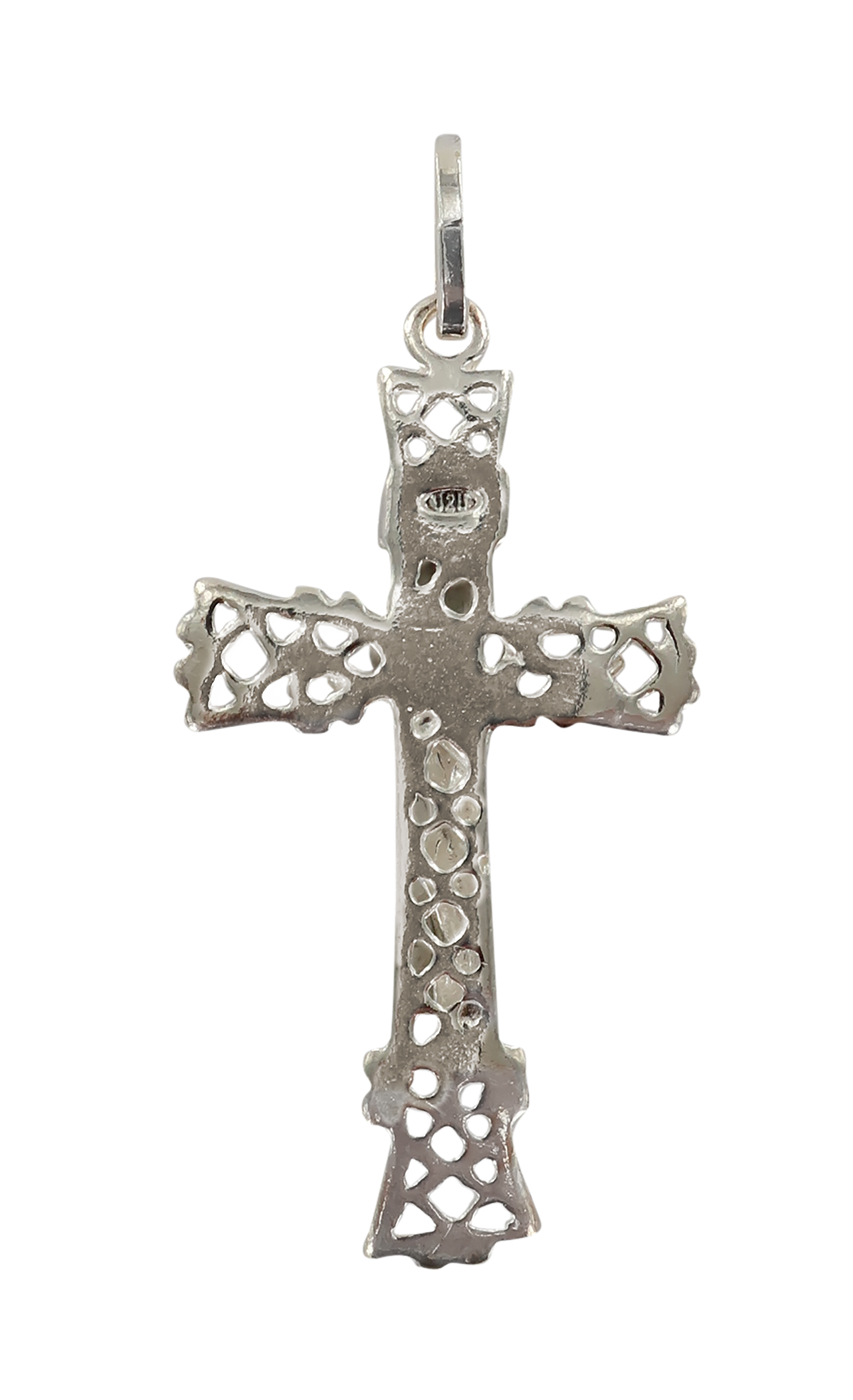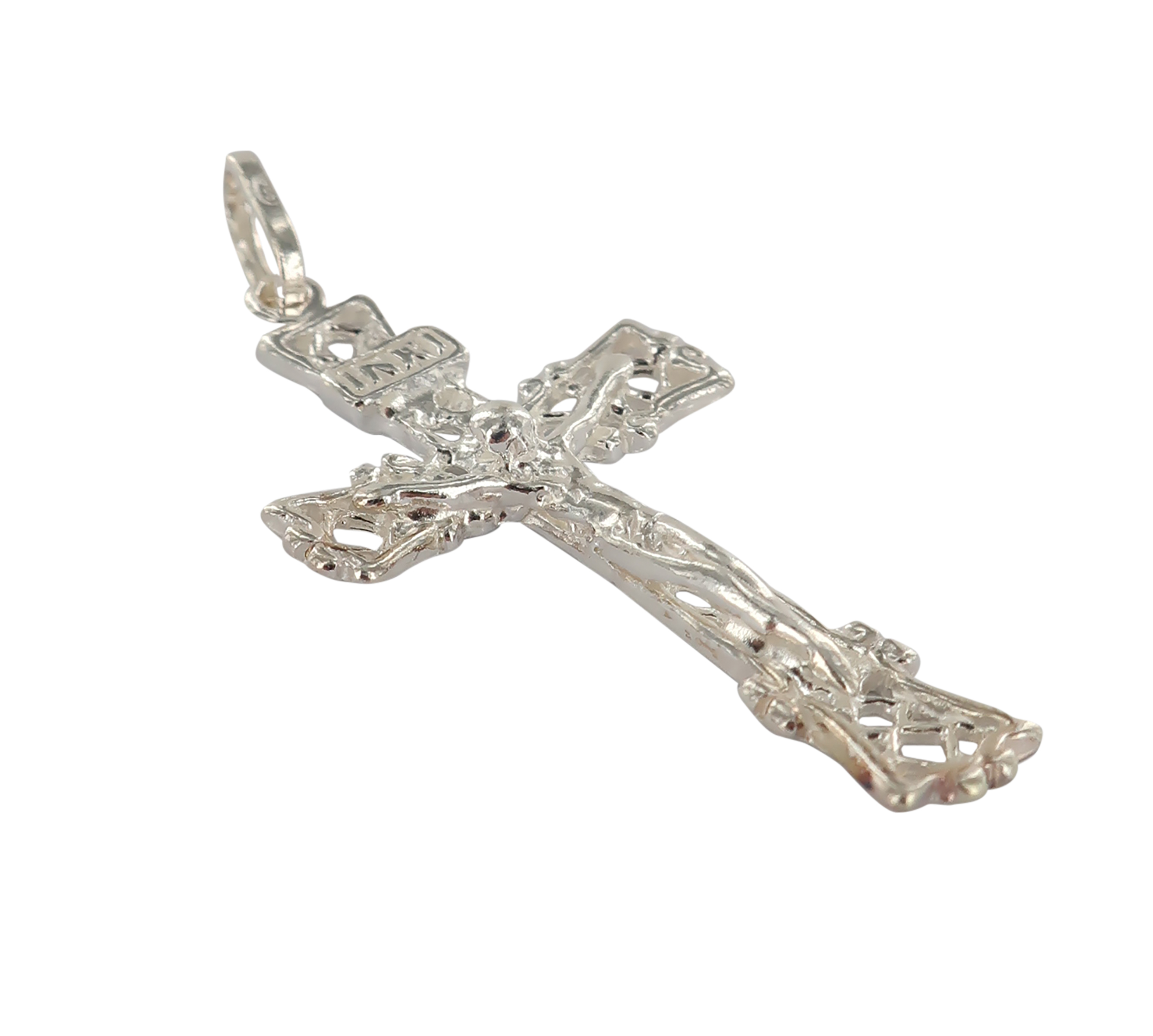 Croce in argento 925 lucido, traforato con Cristo riportato