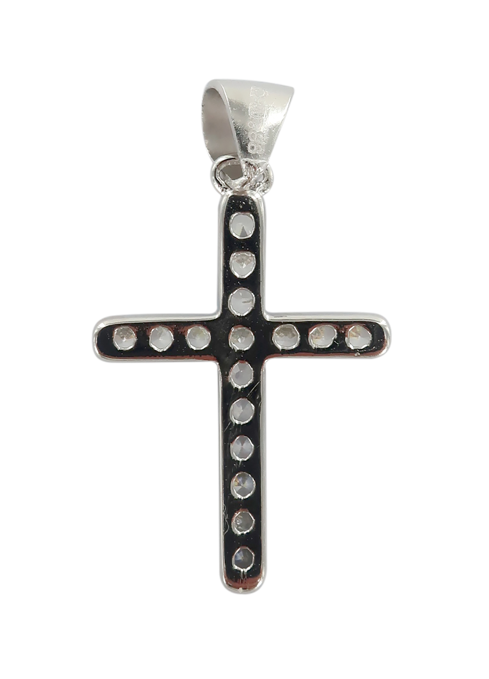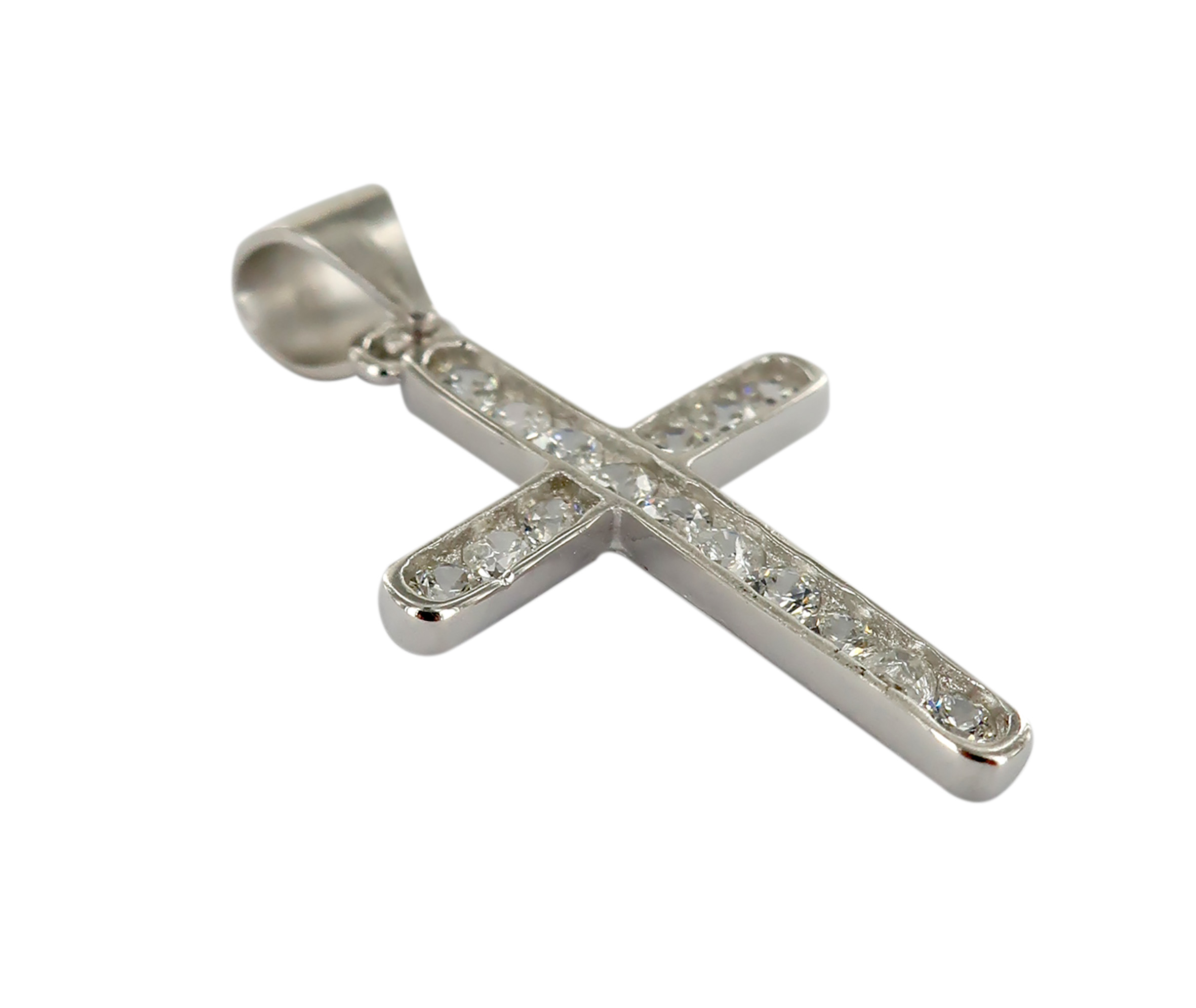 Croce in argento 925 con strass bianchi. Altezza della croce: 2 cm.