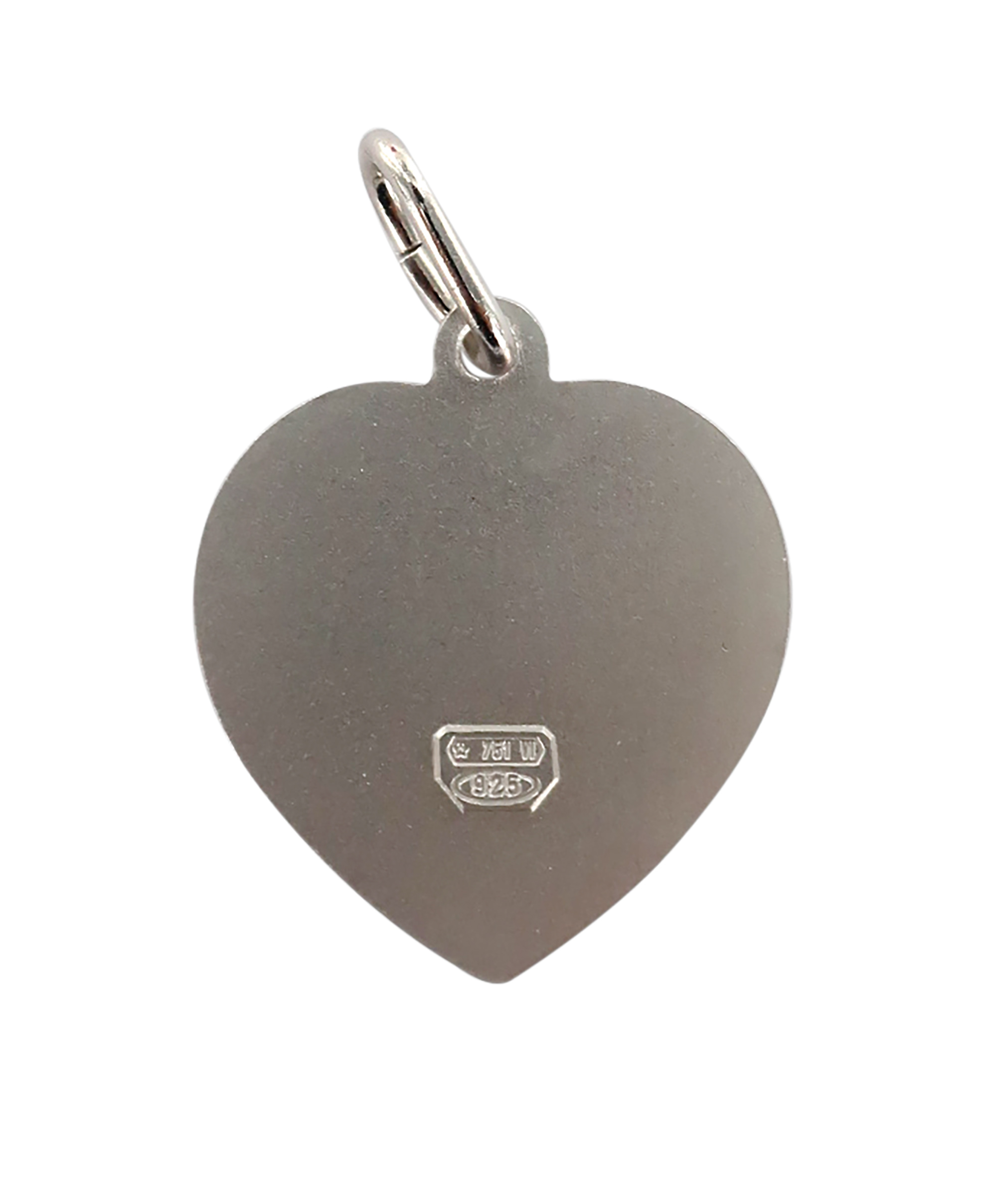 Ciondolo in argento 925 a forma di cuore con profilo zigrinato raffigurante un angioletto.