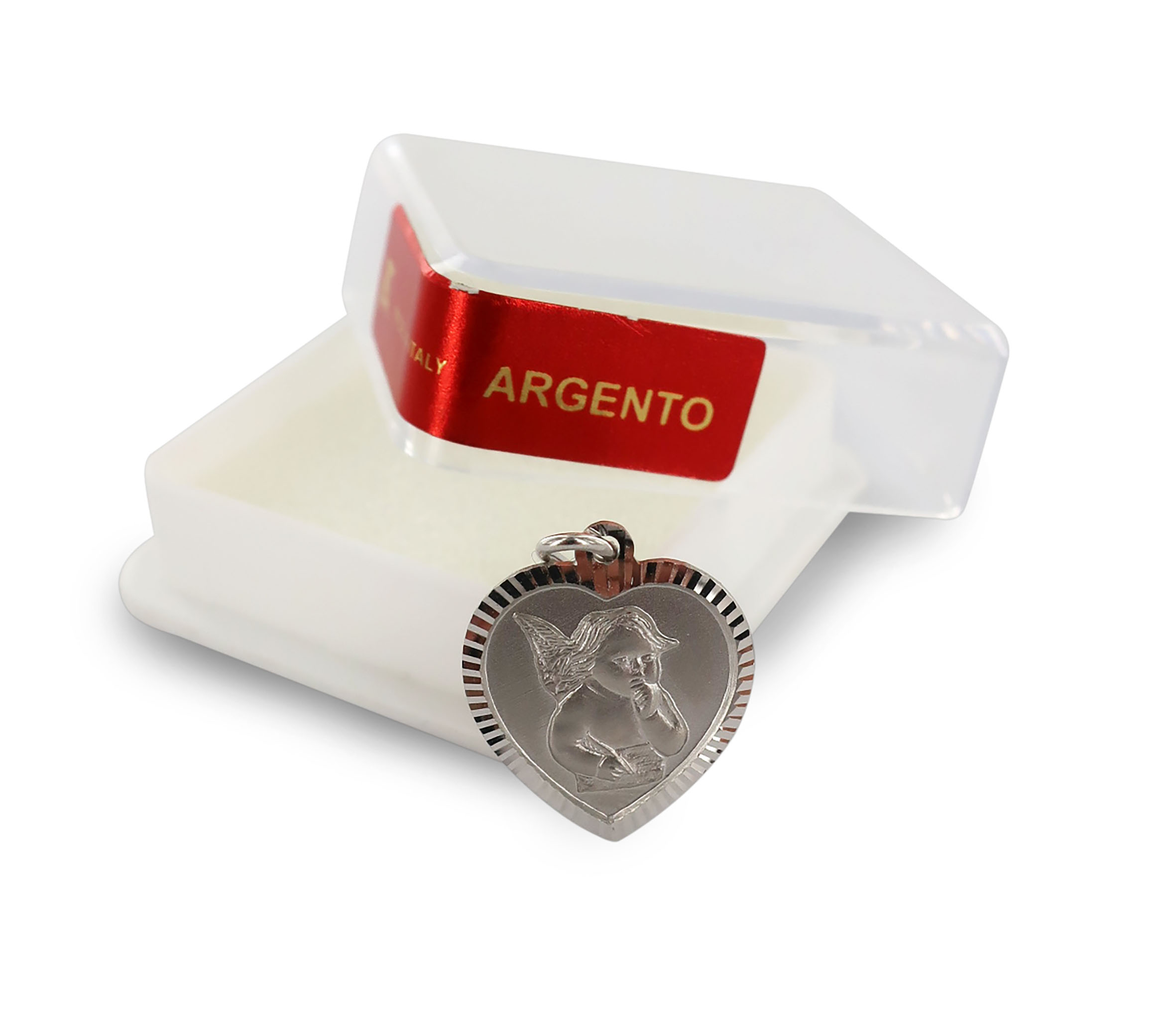 Medaglia angelo in argento 925 a forma di cuore - 1,9 cm