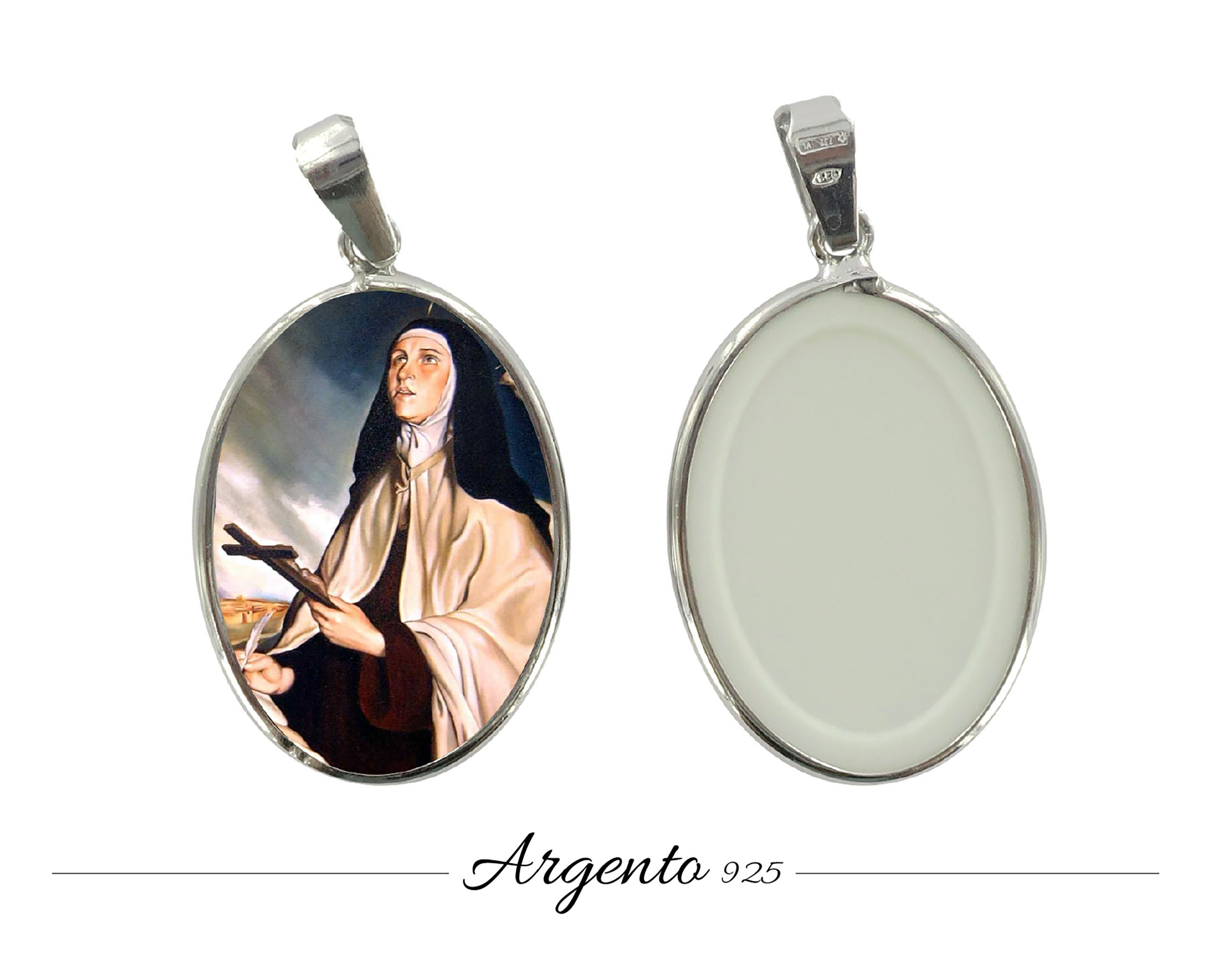 Medaglia Santa Teresa d'Avila in argento 925 e porcellana - 3 cm