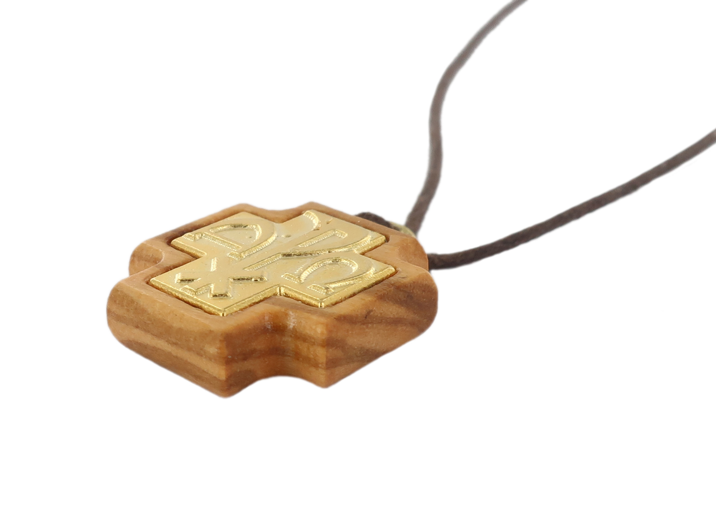 Croce alfa e omega in ulivo e metallo con laccio