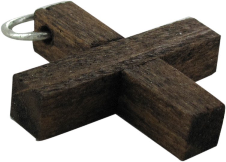 Croce in legno palissandro di misura 2,5 x 2,5 cm dotata di pratico anellino.