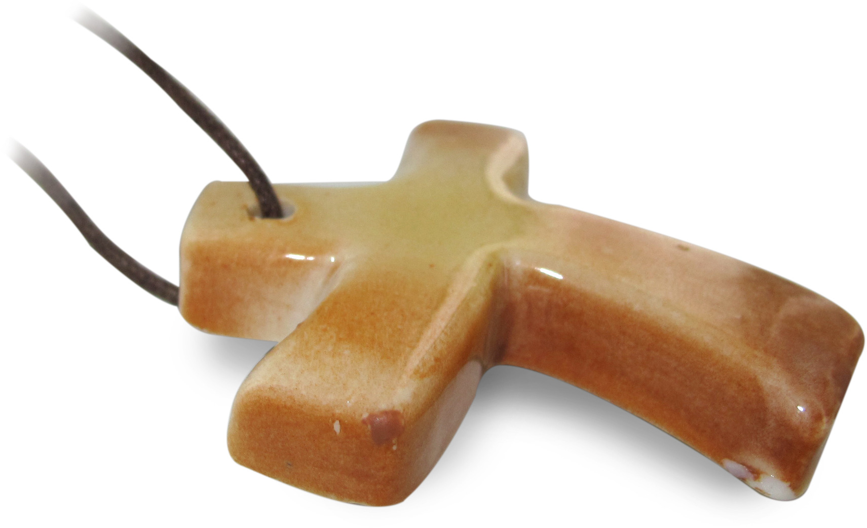 STOCK:Croce ondulata in porcellana multicolor di misura 5,5x5 cm.