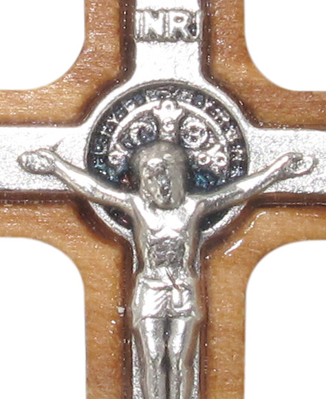 Croce San Benedetto in legno d'ulivo e metallo con cordone - 2,3 cm