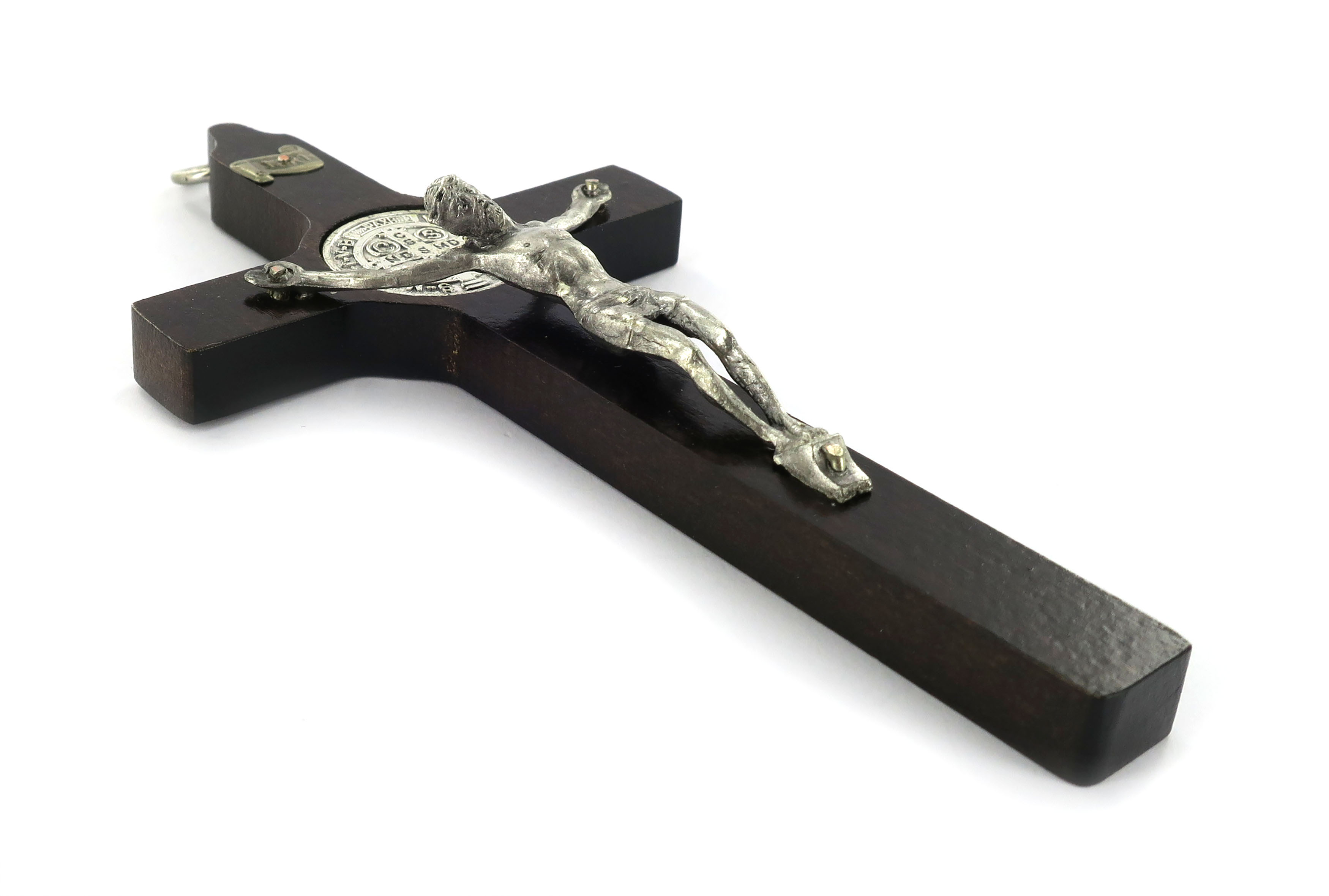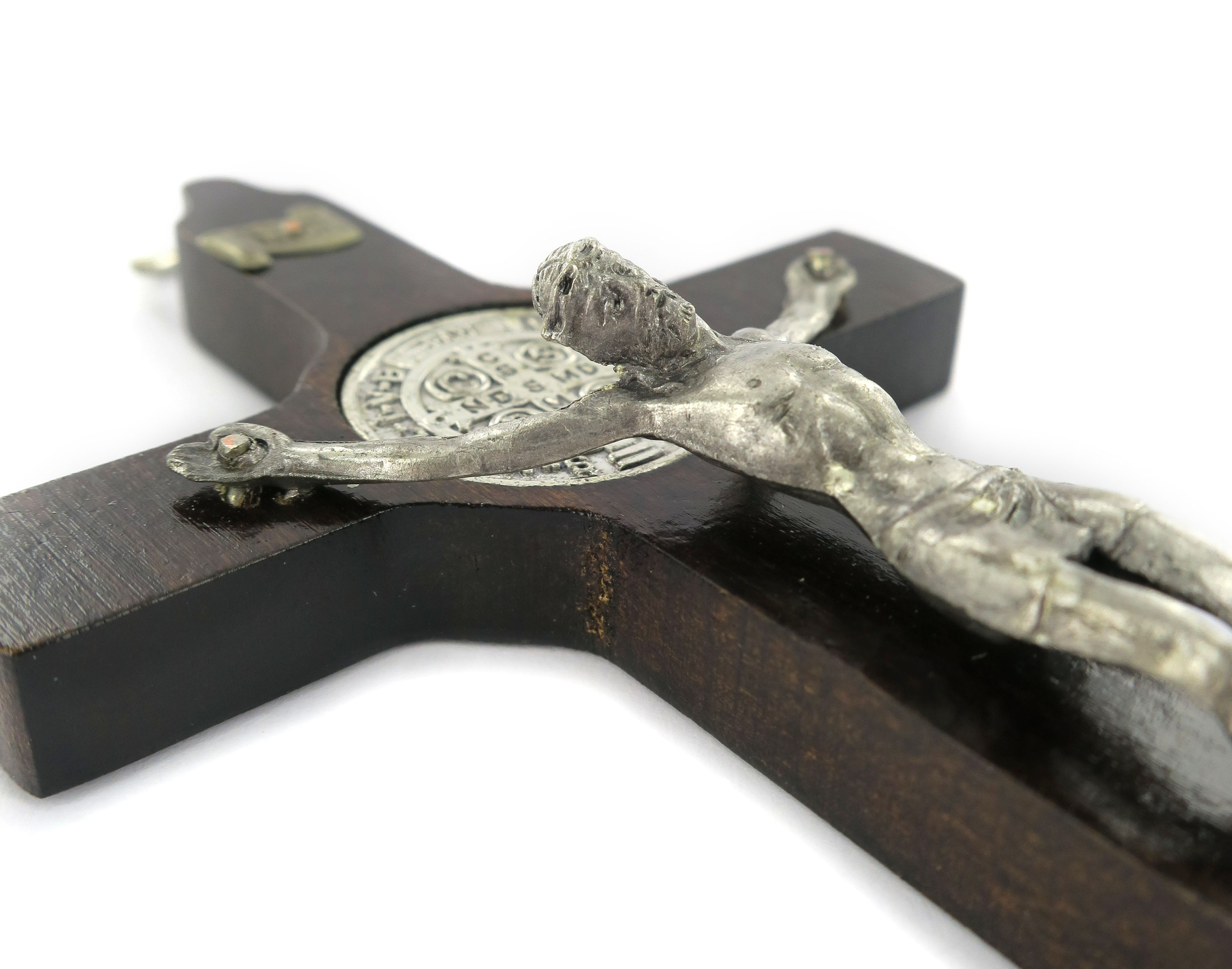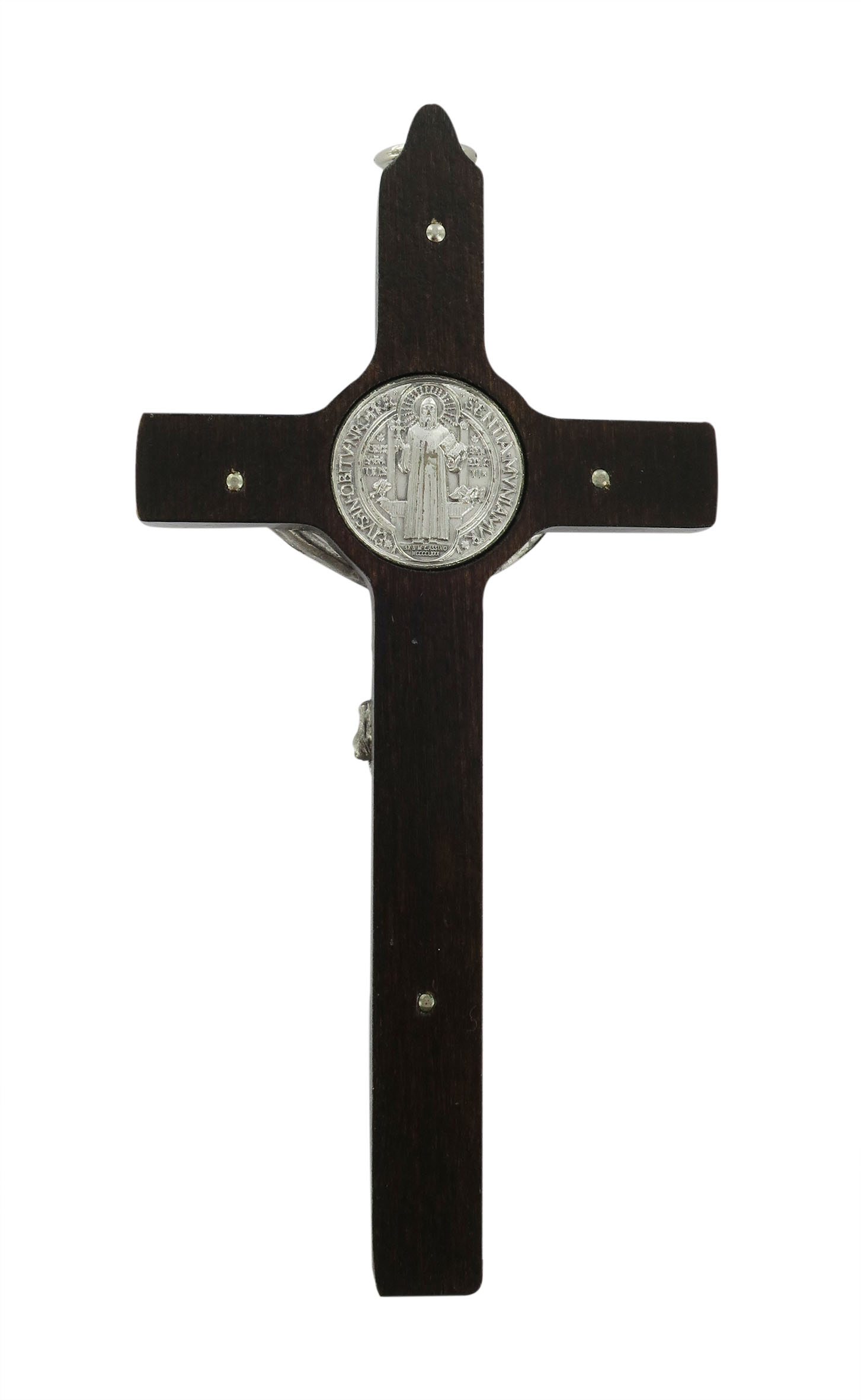 Crocifisso San Benedetto da parete in legno con Cristo in metallo - 12 cm