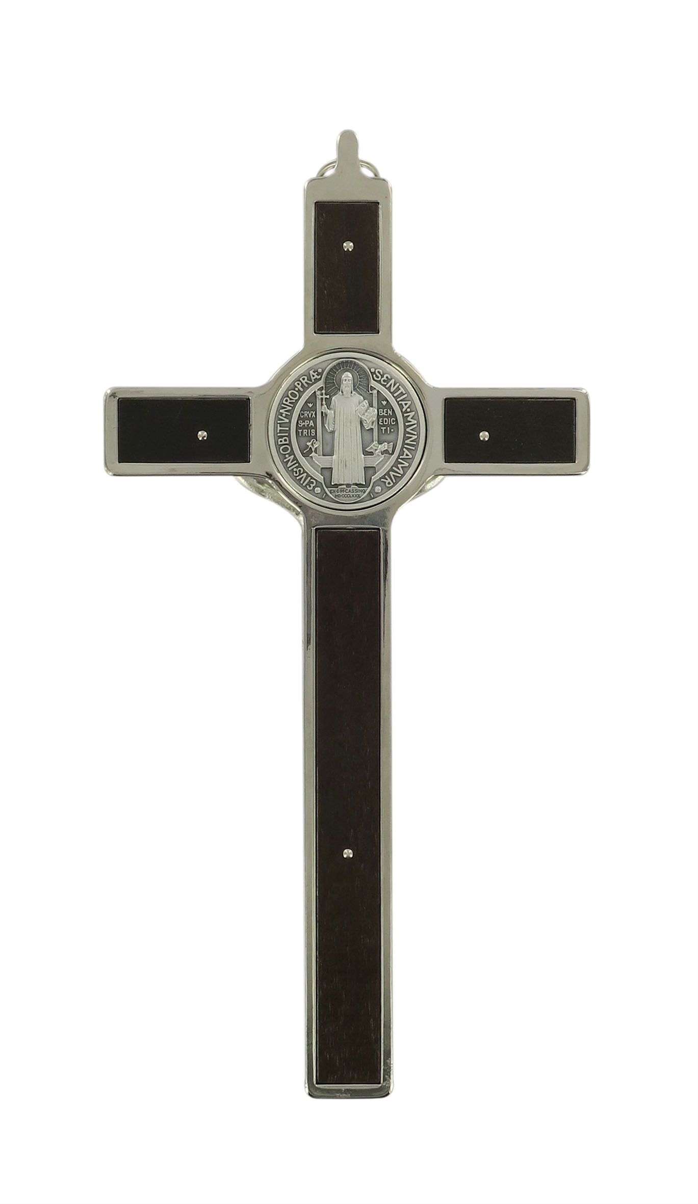 Crocifisso San Benedetto in legno con Cristo in metallo argentato - 20 cm